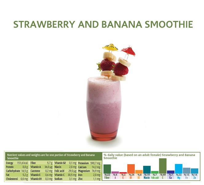 1 Blend the banana, strawberries, soy milk, ice and sugar until smooth.